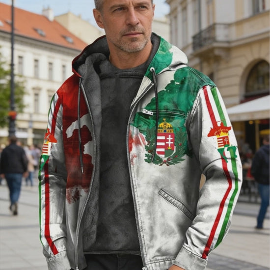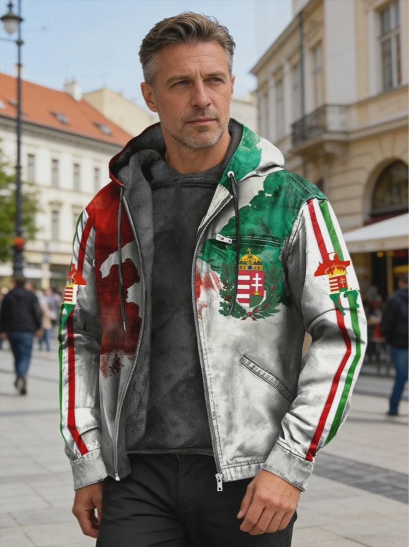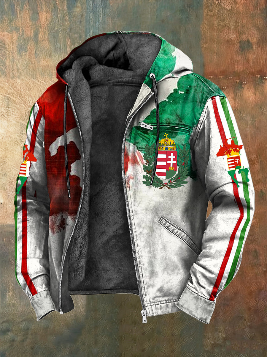 Retro absztrakt magyar zászló gyapjú-bélelt csuklyás kabát